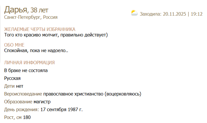 >>10430256 (OP) 2/3 списка критериев тян на третьем видосе вполне здоровые/полезные/человечные/умные, в т.ч. ряд пунктов светит в ней прикольную бабу. Да, планка в целом высокая, но и сама тян уверенно красивая + в идеальном для брачного рынка возрасте + скорее всего образована / знает ин. яз.