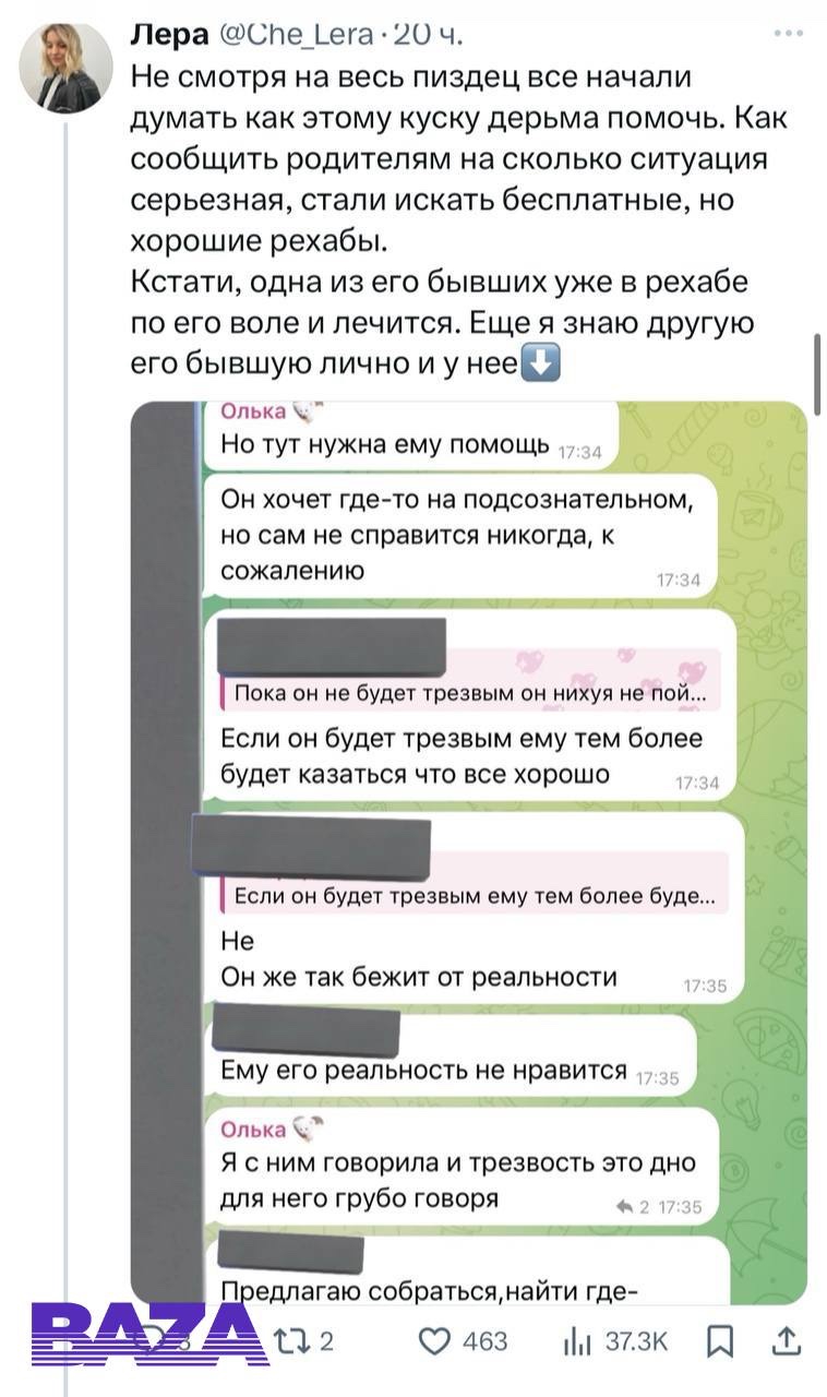 В итоге девушки, посовещавшись, коллективно пожалели Олега и решили написать его родителям о проблемах с наркотиками, чтобы парня отправили в рехаб.