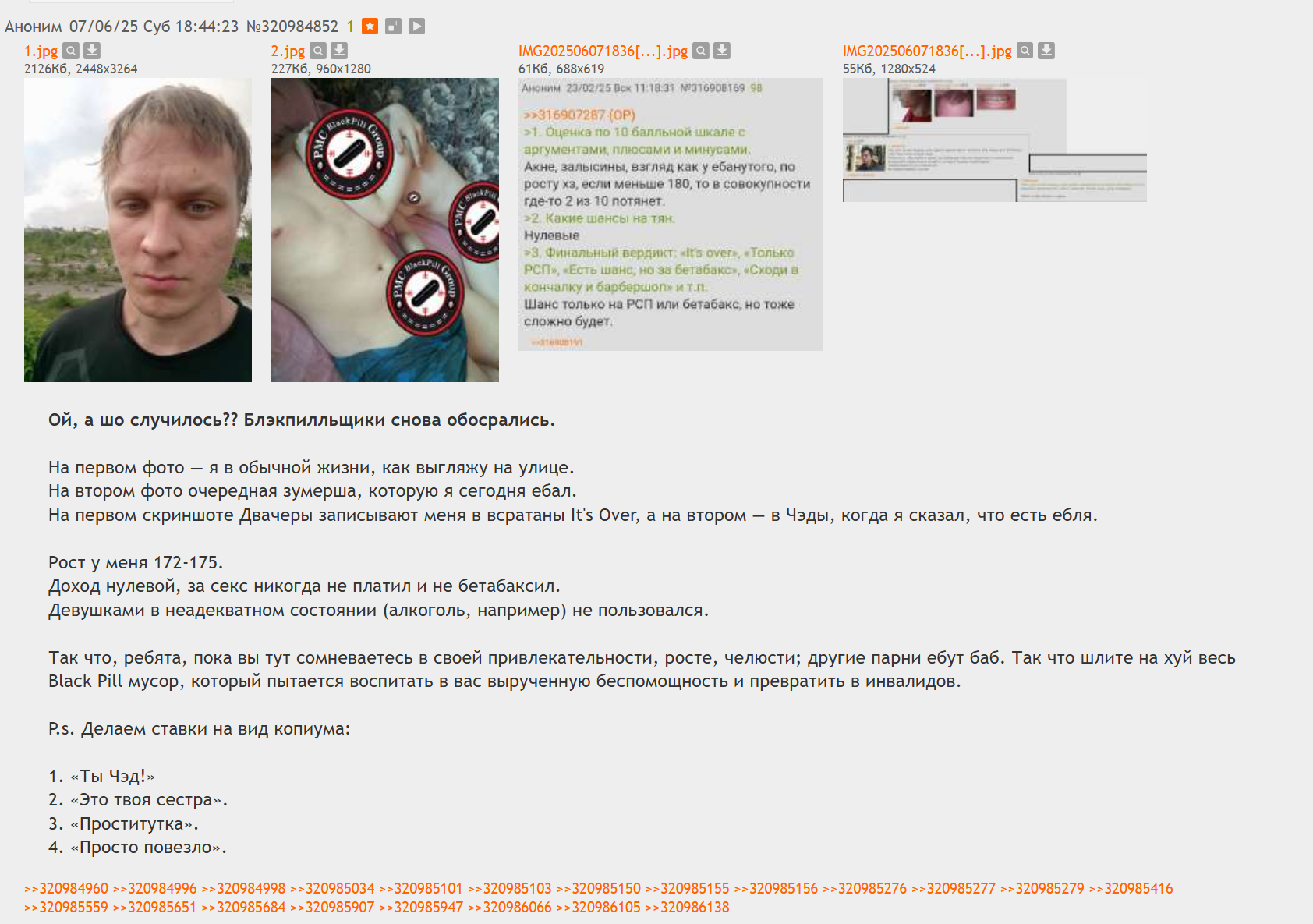 Если бы ты думаешь, что девушки сидят в интернете и ноют о том, что они одиноки, потому что они такие же, как и ты, потому что ситуация там аналогичная инсал-трэду, что это типа такой инсел-трэд, но только для девочек, так вот нихуя подобного. Они там сидят как раз таки потому, что они на голову ёбнутые, потому что они вокруг даже достойного по своим маня стандартам гигачада не могут найти. У тебя на них шансов уж тем более нету. Наоборот, шансы у омежки есть как раз таки на социальную позитиффчиковую нормис тянь с насыщенной социальной жизнью, с кучей друзей и так далее. Ну они конечно все равно маленькие, но они больше чем на ебанашку, которая онлайн сидит.