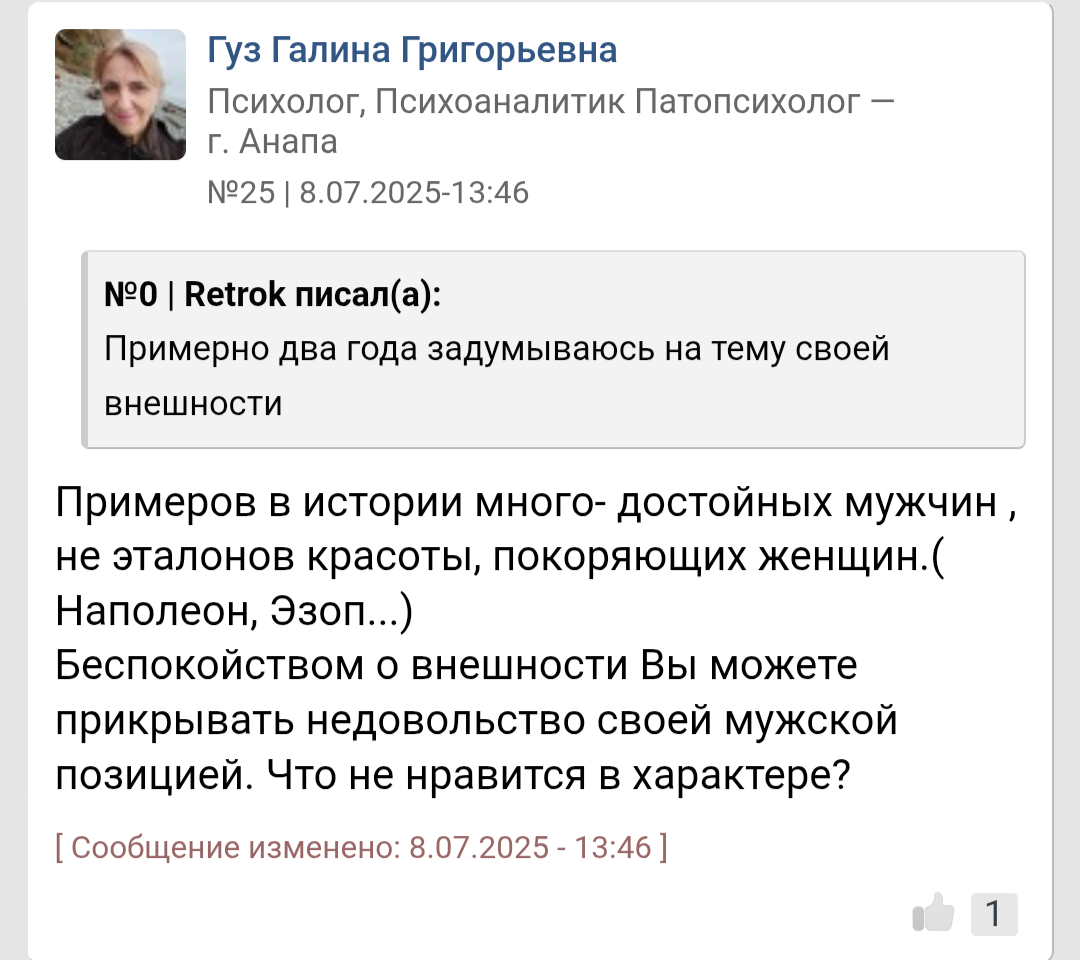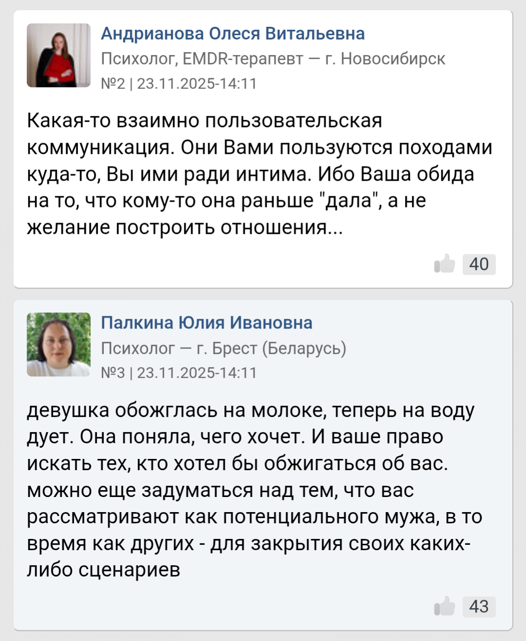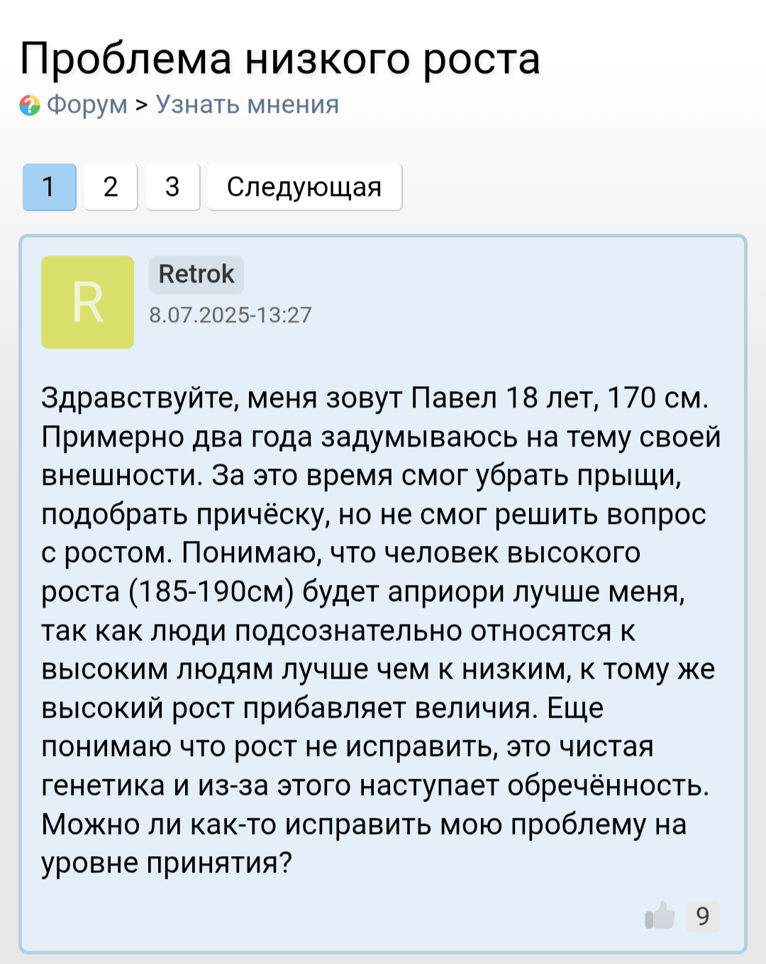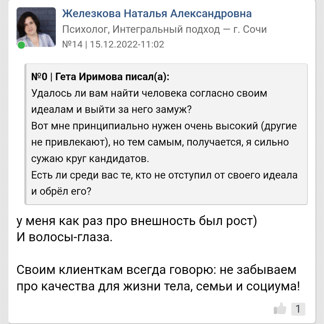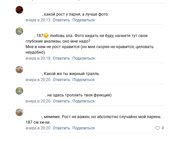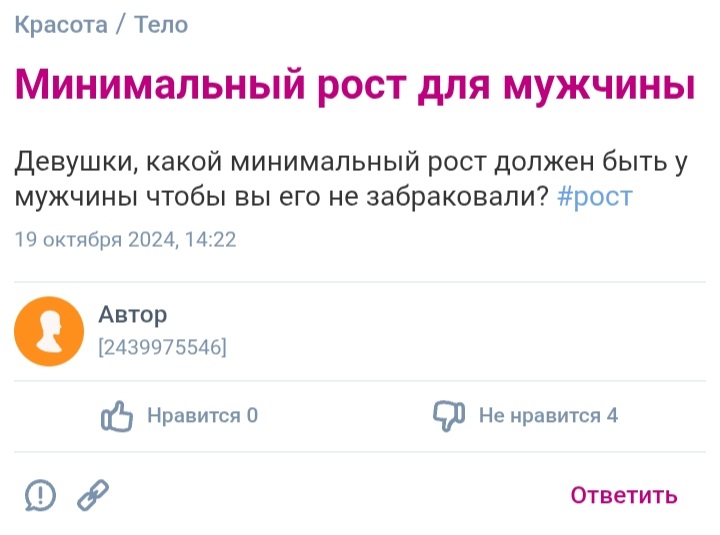 Что забавно, как только речь заходит не просто об опросе про предпочтениям, а пишет конкретный мужчина с конкретной проблемой, то психологи как будто забывают, что в соседней теме писали, что любят рослых