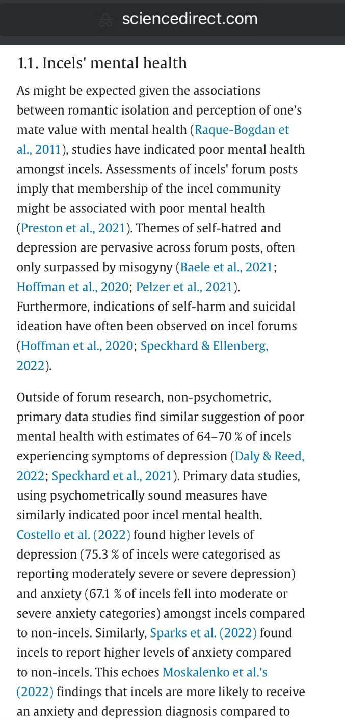 >>10437204 >1 - Нет, если я бы хотел трахаться, как чед, просто мутить с тян ради сексов, был бы шлюхоходом. - Нет, 10 из 10 никто не ищет, инцелы завышают балы, да скорее всего, но не на столько. - Уёбищное отношение к бабам это скорее всего какие-то психопаты, но в отличие от инцелов они, как магниты для баб, инцелы скорее подкаблучники.