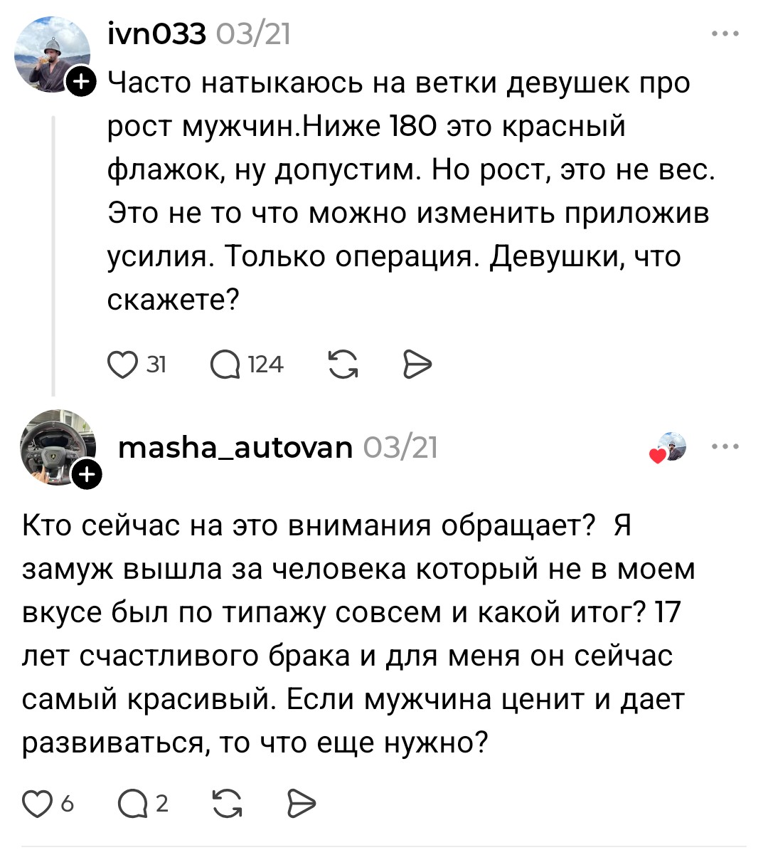>>10438559 На аватарках тети сраки, ну те кто пишет что рост не важен, главное быть уверенным и т.д. Такие и даром не нужны >>10438556 Это понятно, но быть с потасканной возрастной будучи инцелом это полный провал