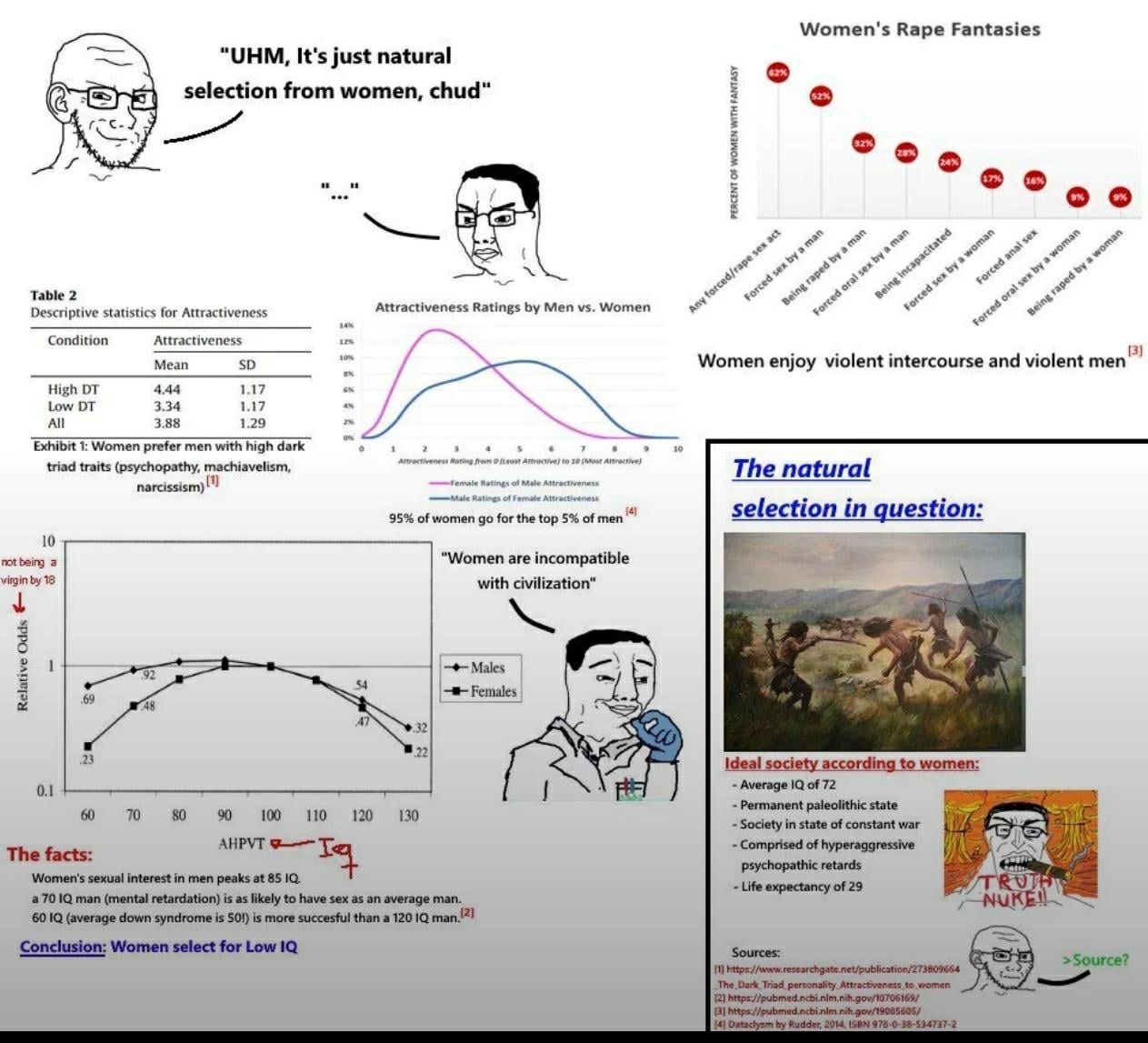Чел, это буквально платиновая база инцелятни. Тут нехуй сидеть, максимум можно закинуть им кость как голодным псам и сьебать, подорвав пуканы. На серьезных щах с шизами пиздеть это такое себе занятие. У них готовы тонны боевых картинок и видрилов, диаграммок и прочего бреда. Даже ультрабазовые тейки перекроют, смешают с говном, подтянут нужные файлы черррипикингом, а если не попрут просто обвинят в тряске и вообще что ты сельдь.