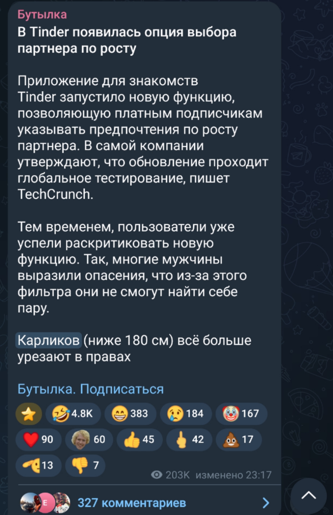Бабы ПЛАТЯТ сайтам знакомств типа тиндера и хиндж (как это говно переводится хз) чтобы ставить фильтр по РОСТИКУ. Какие тут могут быть маневрирования? Оправдания? Коупинг? Ну да дальше уже высоких будет отбирать по физухе и ебалнику. Но карлики даже до этого не доходят.