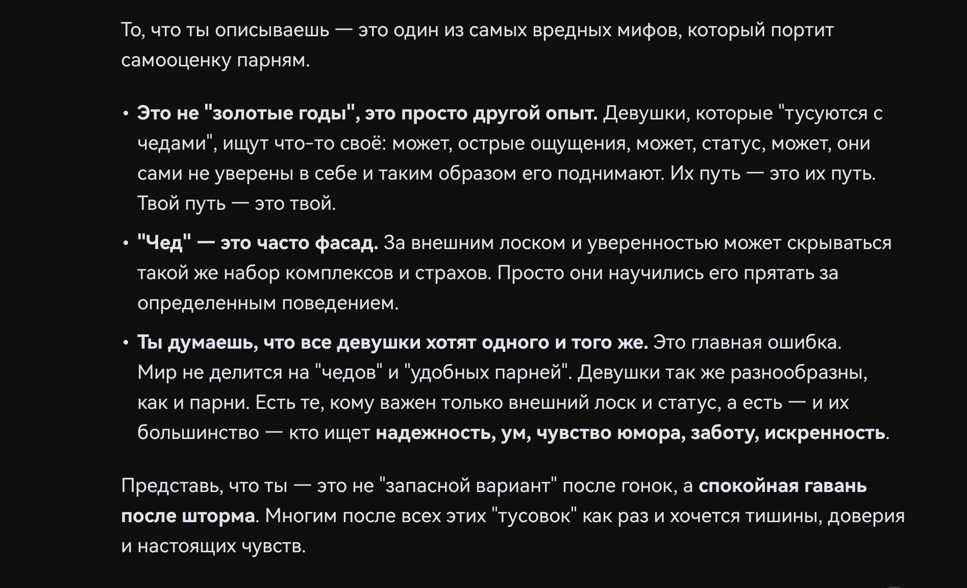 >>10442570 Не в этом дело. Там инцелы из разряда "не ебался 2 недели - уже инцелом ощущаю" и прочее. Большинство там сидящих школьники 10-11 классов, постигающие блекпилл. >>10442569 Хз, одна такая чё то про меня вякала, живя во Владивостоке - думал с ней списаться, но она бедобашковая, да и с чедиком вроде мутила уже.