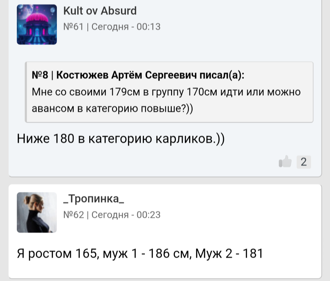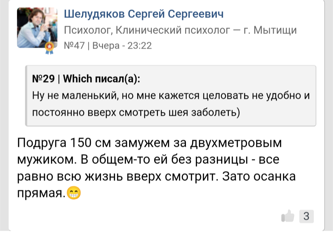 Двое суток не постил в треде. Я ж худо-бедно ушёл. Но есть что рассказать. Жена сказала, что все тян хотят себе высоких кунцов. Так же считает, что К воцел (это уже третий персонаж треда, про которого ей рассказывал). Анону с небольшим пенисом она посочувствовала, как и анону, с которым тян встречалась не по любви…