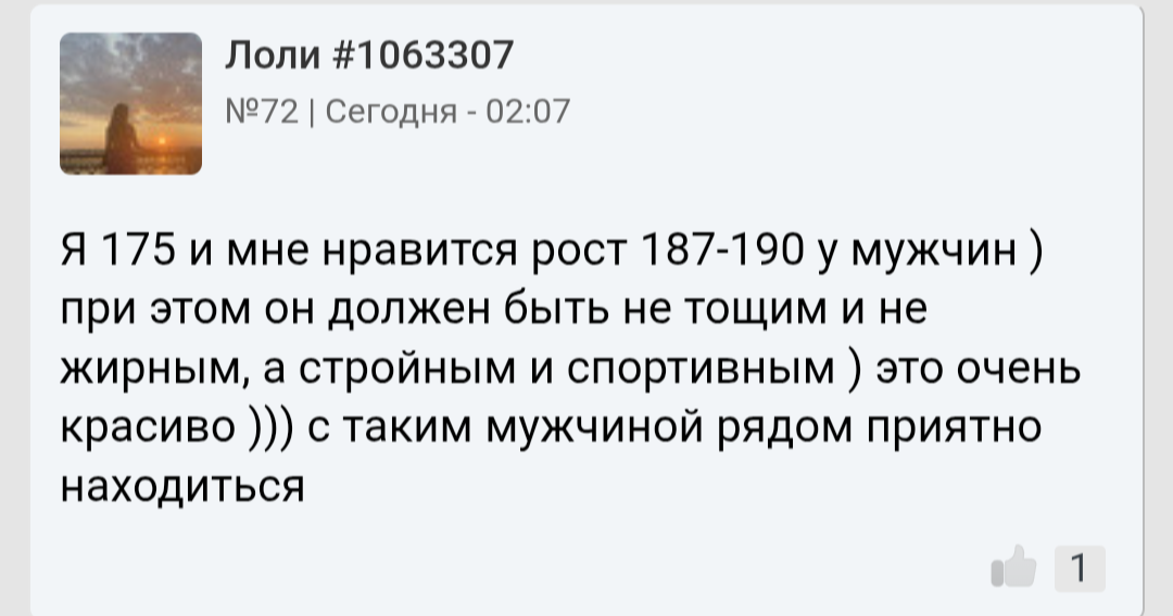 >>10441784 Рост>лицо, коупер. Тянки из за условий сегодня 175 в среднем, поэтому они нахуй мужчин даже ростом в 180 могут браковать, о чем писал челик тут недавно из Питера. К