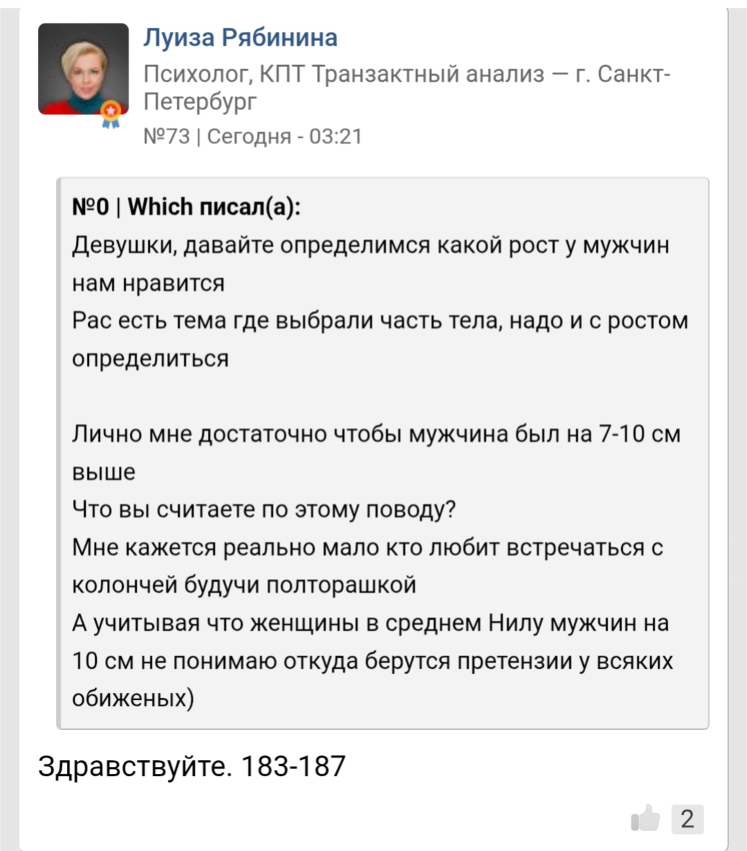 >>10441995 Не только дамочки на сз, но и психологини признаются, что не любят маленьких, когда создаётся опрос. Но в темах, где анон жалуется на рост, они же пишут, что рост не важен А им многим даже не 40 уже