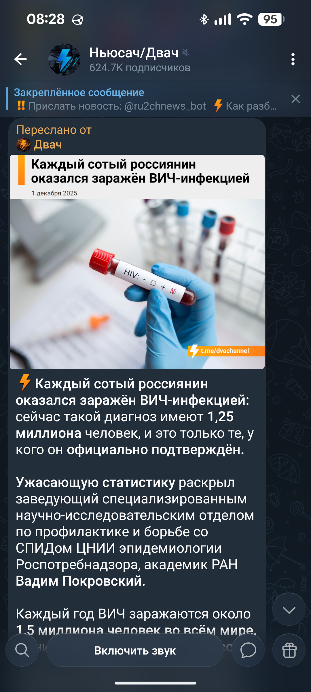 > ⚡️Каждый сотый россиянин оказался заражён ВИЧ-инфекцией: сейчас такой диагноз имеют 1,25 миллиона человек, и это только те, у кого он официально подтверждён.