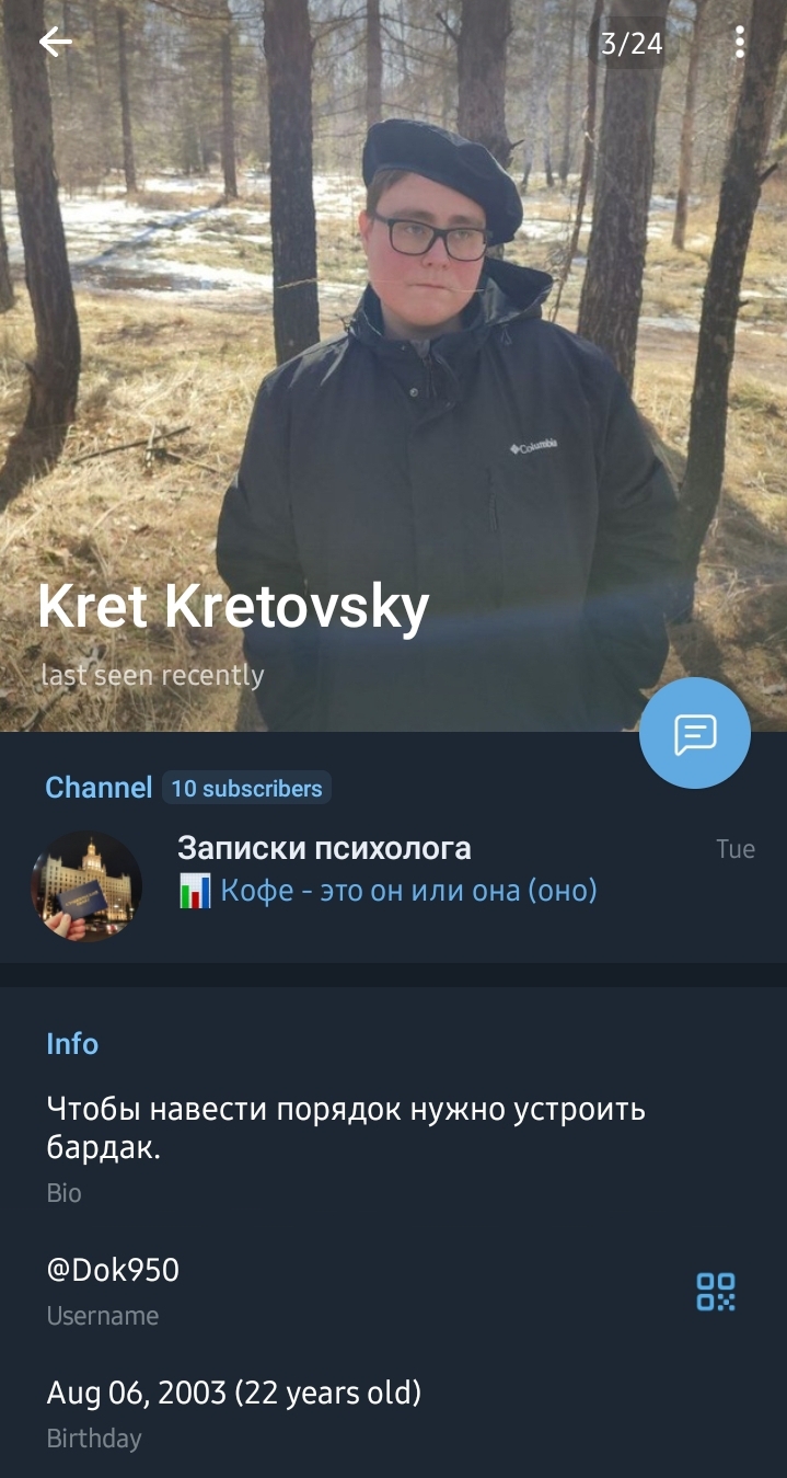 в апреле 2024 случайно познакомился с двачершей прост общались сначала показалась странной, но разговор клеился через пол года признался фулл сдеанонился в первую неделю меня прокатили на качелях это учитывая прошлый опыт с рандомной тян, которая подкатила на улице и пыталась сделать из меня подсоса-собачку с красивой внешкой хз нахуято терпел выебоны и оскорбления пытаясь понять потом она приехала в мой город и подарила перчатки чтоб я не мерз во время телефонных звонков тк понравилось гулять во время созвонов стабильно примерн раз в месяц ругались недавно скинул ей инфу про болезнь и она прост отморозилась, типа спокойной ночи по внешке пробивает мои предпочтения на 8 из 10 регулярно удаляла диалоги в тг вчера не вышло созвониться, мне сказали какуюто хуйню ну я и заблочил на время. в итоге диалог опять удален видимо надо было после первого же раза слать ее нахуй, тк единственное что волнует эт свое ощущение. а я еще чет объяснял и пытался помочь пофиксить проблемы с менталкой тк в 17 лет получил диагноз кптср да и хз не переношу ссоры. достал нож так бей, или не выебывайся пруфал ей все про симпов тян, хз че сказать еще. хотя она тож за мной бегала, но мб с мотивом собственного ощущения что комуто нужна