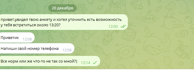скажите аноны это я ебанутый или баба? номер свой скинул в тоже время как она написала потом спустя какое-то время прочла и потом перестала и минут 5 ничего не отвечала.я конечно пытаюсь поставить себя на место другого человека но у меня тоже время и надо понимать будет встреча или нет.