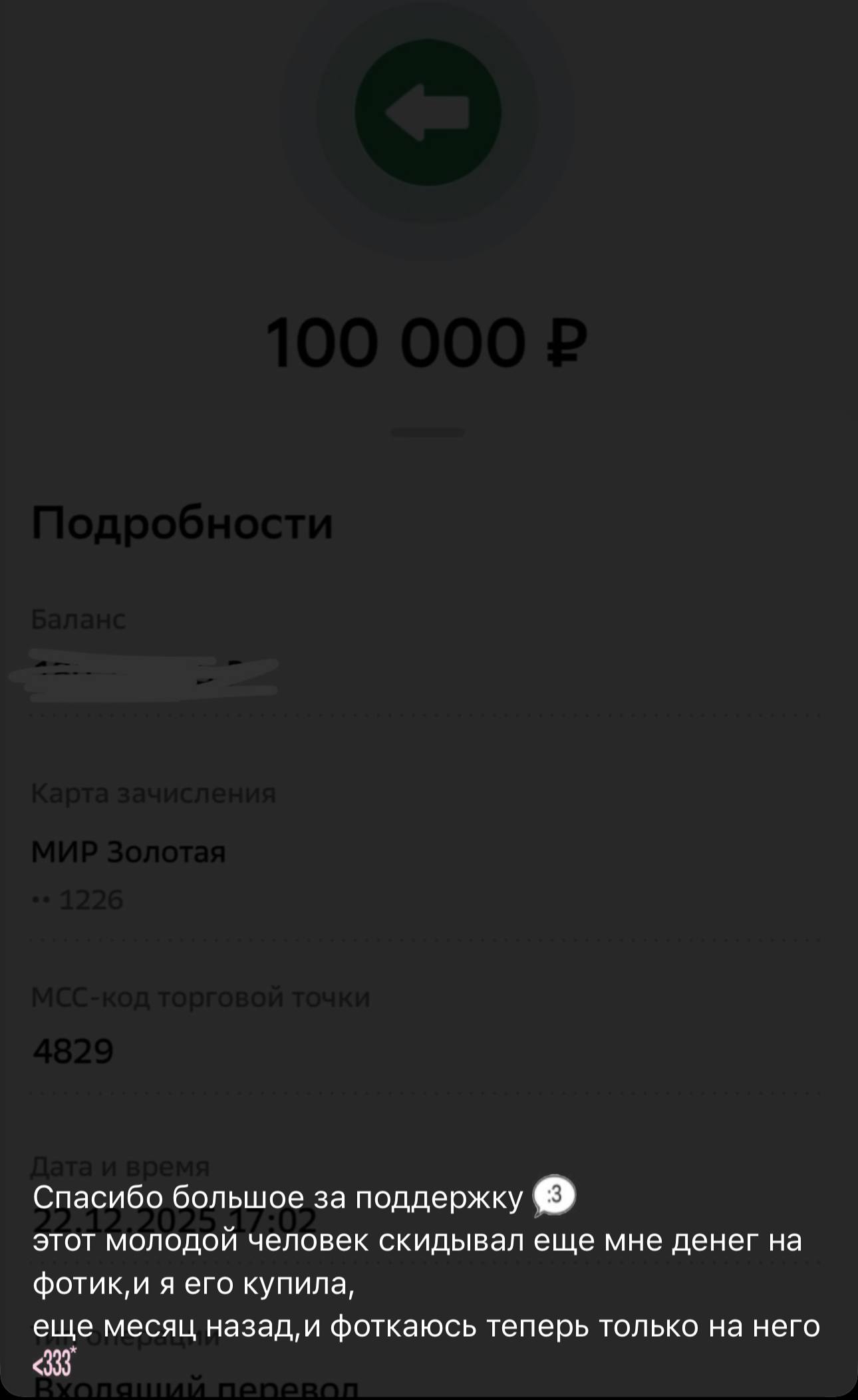 >>10471439 >>10471398 Серушка расказывала что он ей 150к на фотик скидывал. Она с ним виделась всего одинраз он ей дал 200к и сказал писать если нужна финансовая помощь. Вобщем у них там долгая история взаимоотношений, он присылает ей деньги и не просит о встрече.