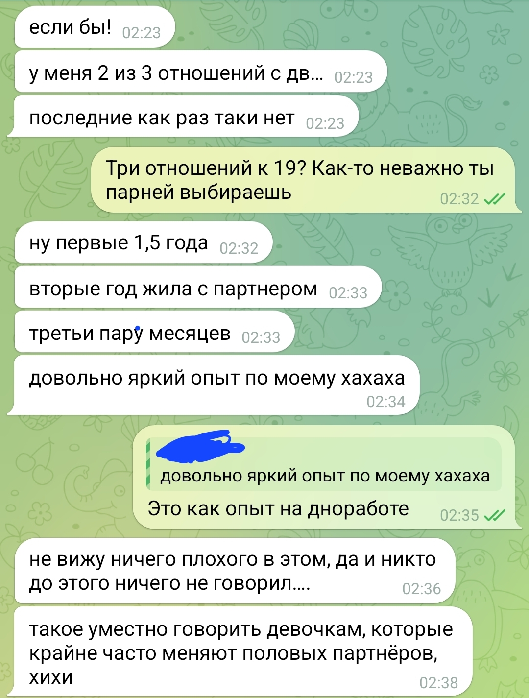 >Либо ты настолько неуверенно себя ведёшь и душишь Вроде нет, но хз. Объективную картину мне никак не получить