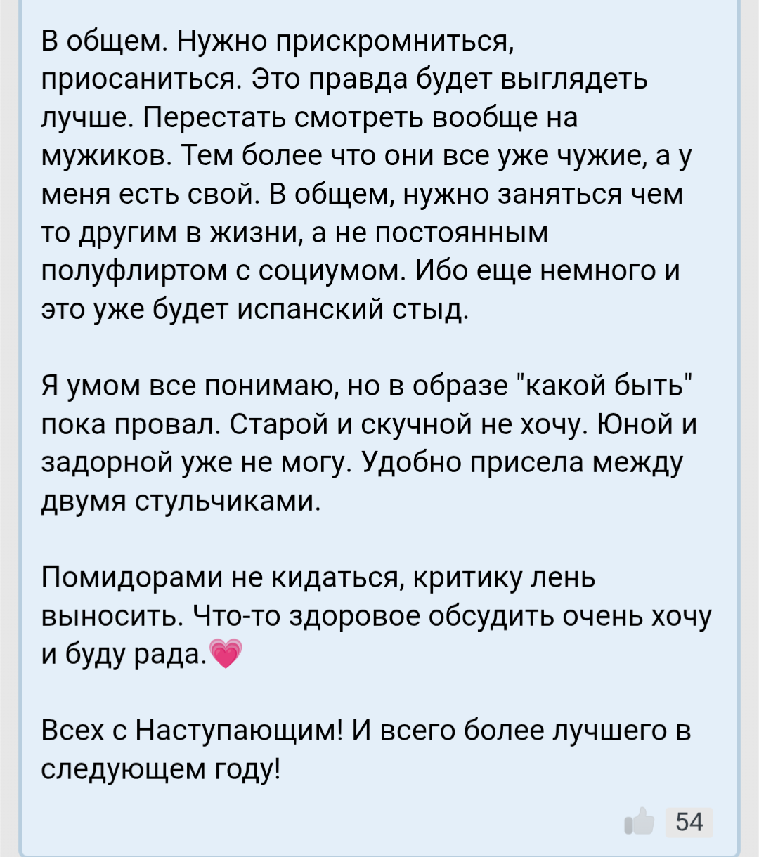 После этого с тян вообще не общаюсь. Ну типа я снизил планку, поднял жопу, бетабаксил тян и что? Да было в 100 раз хуже чем если бы я из дома не выходил, хотя бы без эмоциоальных потрясений жил.