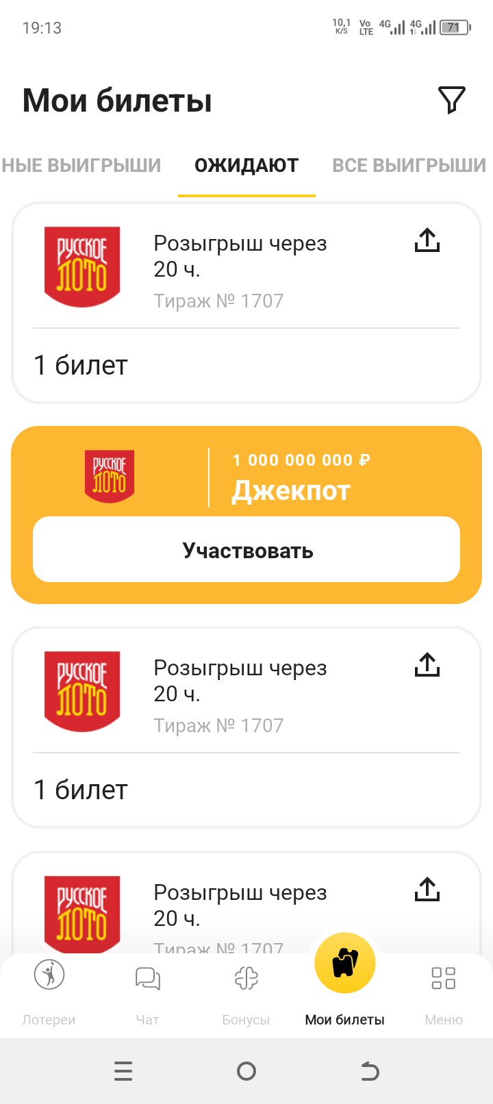 >>10483757 Мне похуй как-то, я за промокоды билеты взял, но, если бы, реально было выйграть хотя бы лям (мне, максимум, 15 к удавалось) я был бы очень рад!