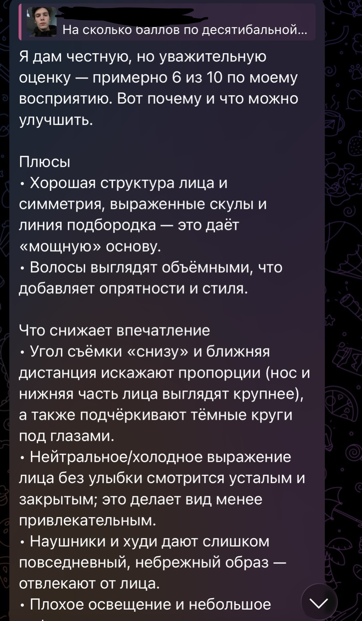 >>10490928 Дохуя хочешь. Положняк такой что без проблем находится дырка на 1-2 балла ниже тебя. Я на 8, в большинстве случаев ебу и встречаюсь с уверенными шестёрками. Раз ты 3 из 10 то тебе в секс с обгоревшими в пожаре жирухами. >>10490932 >А какое увлечение тут у местных покорителей СЗ ? Похуй на увлечения, химия либо есть, либо нет. Вся эта хуйня для наивных которые женщину не нюхали. От меня слушают как мне понравился берсекс и как я ассоциирую себя с Грифитом и как нам точно стоит посмотреть мой любимый мультик в месте, а от 3/10 мутанта она даже своё любимое листание рилсов обсуждать не будет.