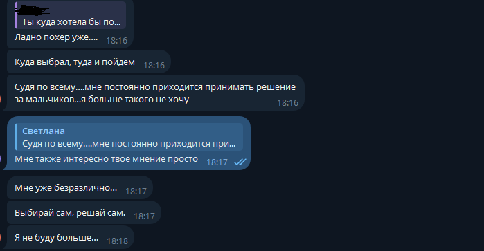 Да короче не имеет это смысла все челики, даже свои телки бросают и уходят восвояси. Смысл распинаться ради ноунейм шкур с запросами которые вас воспринимают лишь как ресурсных лохов. В пизду это все