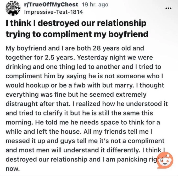 блять при полноте картины я бы вообще не согласился даже общаться хз только что делать с подарками от нее типа одежды и прочего хз есть ли аноны из моего района чтоб забрали подарки на нг из пвз