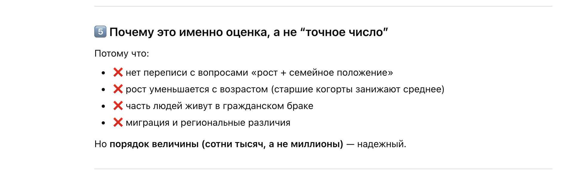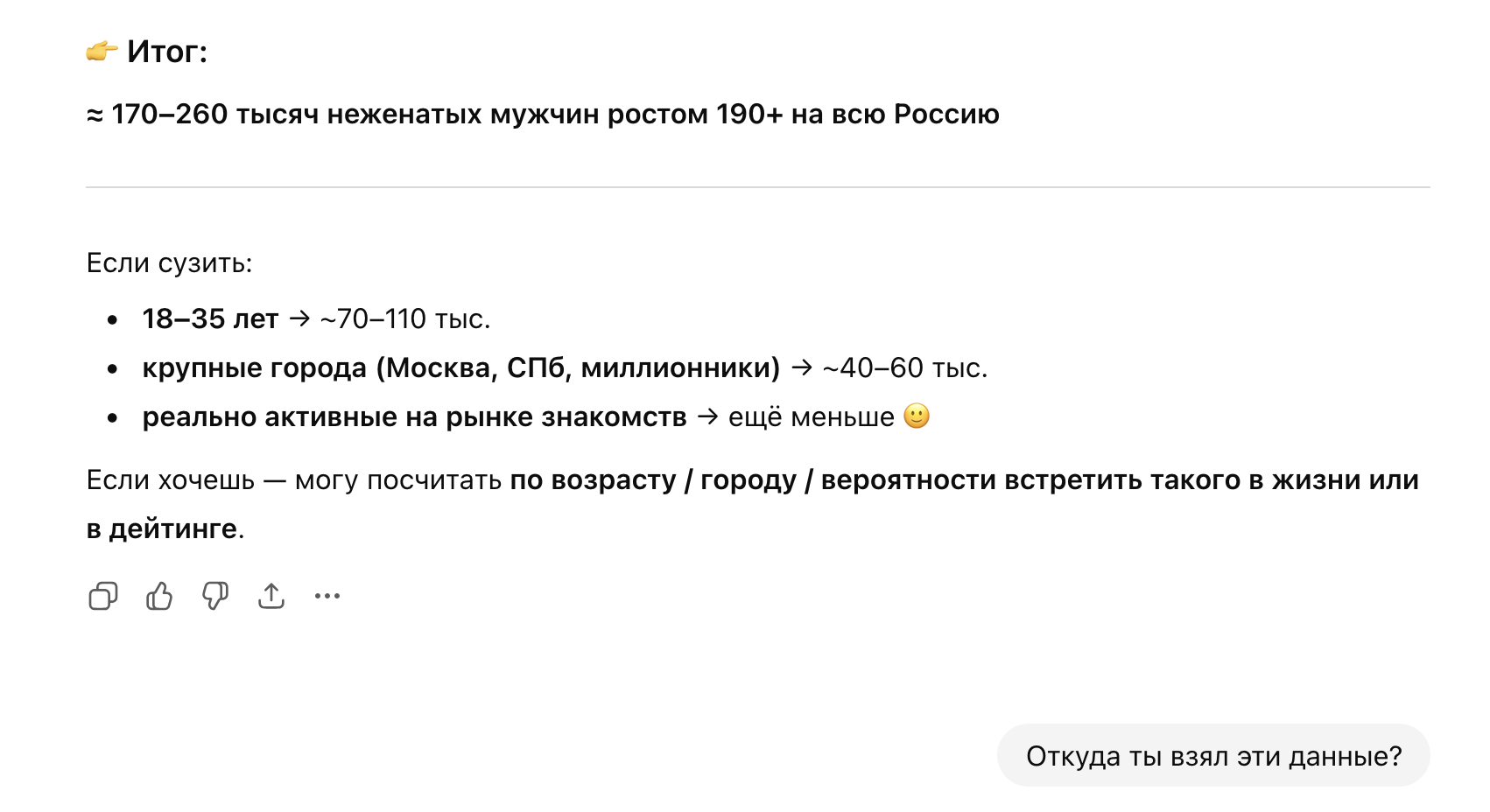 >>10493515 Лол, вот только долбоеб это, если не умеешь пользоваться AI. Чатгпт это сборник всего интернет и он зачастую в вопросах цифр ошибается. Спроси, откуда он эту инфу взял и попроси источники на открытые данные. Потом поймешь, что он либо выдумал, либо нашел ограниченную выборку из 10 человек из 2000 года.