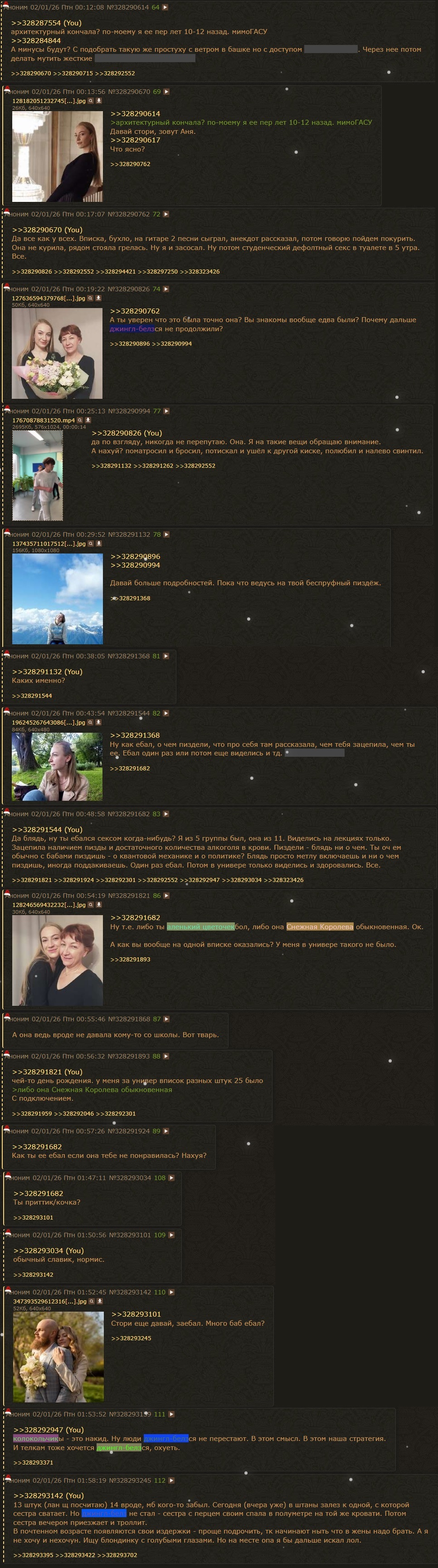 Поскольку здесь периодически пытаются устраивать филиал инцел-треда, к любой полученной ITT информации следует относиться с поправкой на местную аудиторию. Не забывайте репортить инцелошизу и просто шитпостинг (да, это работает). Анал_огично, если видите в треде очередное "я простой парень, сразу зову баб к себе и трахаю по 10 новых баб с СЗ каждый месяц" или что-то в этом духе - погуглите, сколько у среднекуна половых партнеров за всю жизнь, и подумайте, насколько вероятно то, что какой-то pizdobol na dvache набирает ту же стату за месяц-другой.