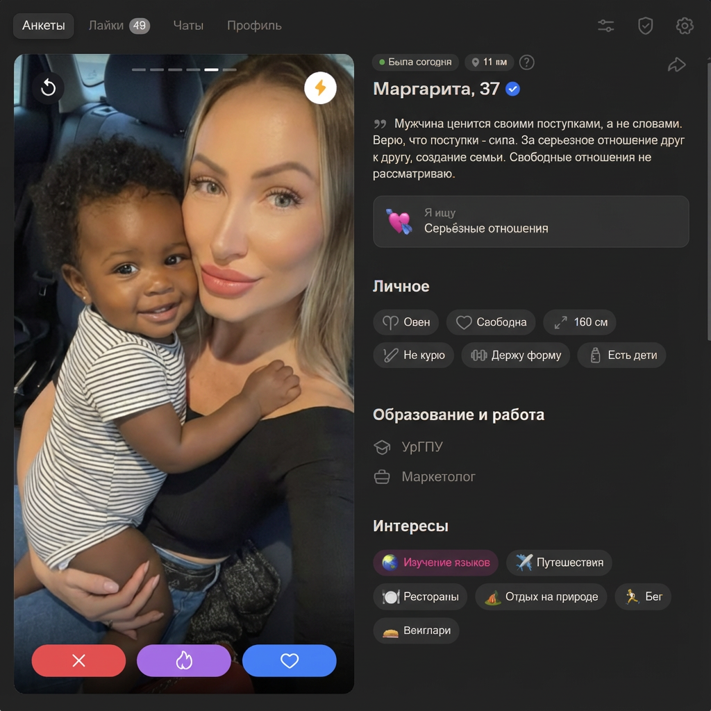 >>10500288 Хз о чем вы, тян дохуя и общаются, НО ПОВТОРЮ: Ну что, попробовал вчера вечером я ваш дайвинчик. Захожу сегодня и что вижу во взаимных: 8 жирух, 2 рсп, 1 просто всратая лицом. Спросите зачем лайкал? Отвечу фото в анкете и фото и сторис в профиле тг отличаются. Это реально дно какое-то.