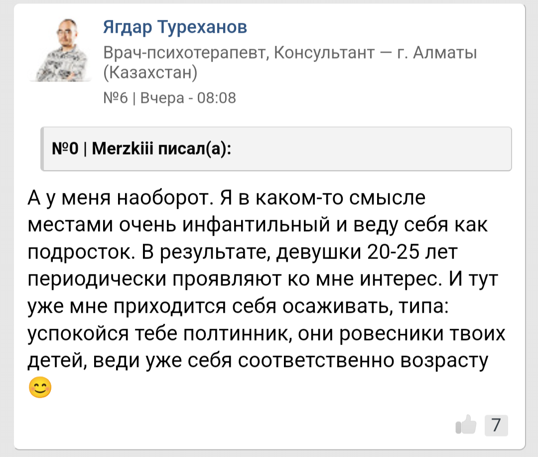 Одни плюсы. Тогда откуда такая мерзкая фиксация на возрасте? Когда при разнице больше 3-5 лет, делают круглые глаза и заявляют "ой ты слишком старый". Телке 20, парню 29, все, он уже слишком старый для неё, ага, дед, скуф. Пикрандом