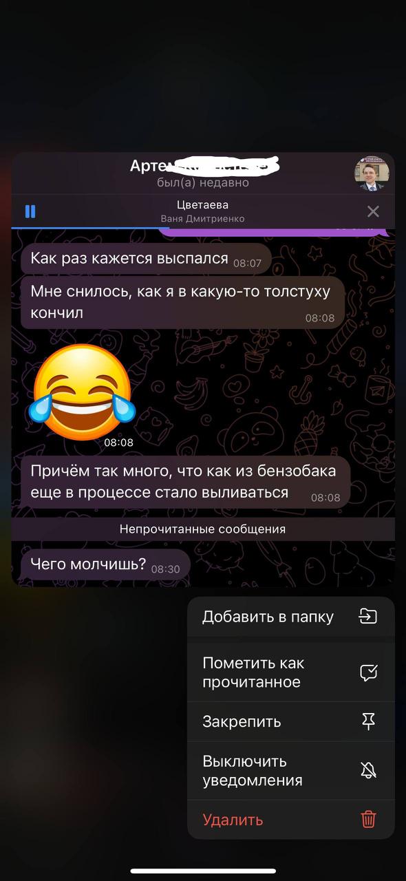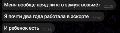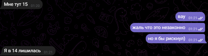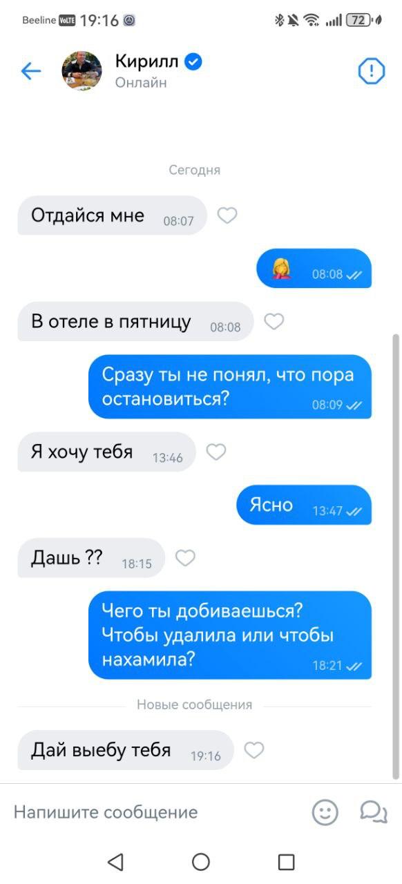 На прошлой неделе ходил на 4ый дейт (25 лвл тян). Всё прошло как обычно. И тут я довольно урча жду заветное сообщение, мол добавляйся в тг, а его нет. Меня забомбило. Я написал через сутки уже нахуй сам ей в дейтинге, поздравил с долгожданными заслуженными выходными (она много жаловалась на работу на встрече), но она не заходила в сеть (в дейтинг, там отображается). Не заходила до понедельника вечера, т.е. сегодня. Зашла, отшутилась, мол, да, выходные быстро прошли и поздравила с понедельником, и дала свою телегу.