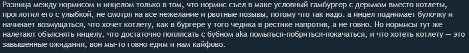 Поскольку здесь периодически пытаются устраивать филиал инцел-треда, к любой полученной ITT информации следует относиться с поправкой на местную аудиторию. Не забывайте репортить инцелошизу и просто шитпостинг (да, это работает). Анал_огично, если видите в треде очередное "я простой парень, сразу зову баб к себе и трахаю по 10 новых баб с СЗ каждый месяц" или что-то в этом духе - погуглите, сколько у среднекуна половых партнеров за всю жизнь, и подумайте, насколько вероятно то, что какой-то pizdobol na dvache набирает ту же стату за месяц-другой.