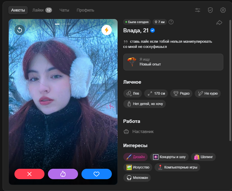 Скоро день всех влюбленных, а это значит, что пора ставить боевое описание себе в анкетку и байтить селедок на лайк. Правда я в ответ никого не лайкаю.