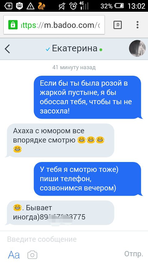 >писал про взаимное получение эмоций от общения в первый час, второй час, что подтолкнет к встрече и каждый раз общение будет приносить удовольствие. Когда ты получаешь эмоции от человек А границы второго третьего часа ты установил? В чем отличие от пригласить на свидание через час общения, от через 3 часа общения? Более тёплая температура? Оо про эмоции совсем бред, какие? Они могут быть в чате, от букв. Только чтобы потом ожидания не оправдать и получить тот самый негативный опыт: он был такой смешной в чате а потом оказалось он 175см ростом