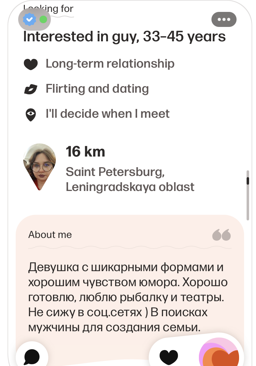 если эмоций от общения нет, то что остается? Только эмоции от визуала. Если эмоций от твоей фотки нет, она не вызывает ни вопросов, ни умиления твоей красотой или тем, что она лично считает интересным, то все. Конец.