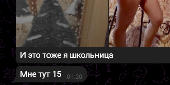 >>10533034 >Но ты этого не показываешь… Лень искать в куче сообщений именно это, делаю скрины комплиментов >>10533039 >Фейк анкета Тебе виднее, ведь ты не видишь фоток и подтвержденной анкеты с фотками из города и местных заведений (в отличии от девушек на СЗ) >малолетки Нет, кстати, женщины от 24 лет в основном >контраст на фоне малых лайков на сз у анонов Ну кто ж в этом виноват, у кого то больше, у кого то меньше >обычный троллинг И в чем троллинг? Тут обычный коуп и непринятие действительности с твоей стороны)