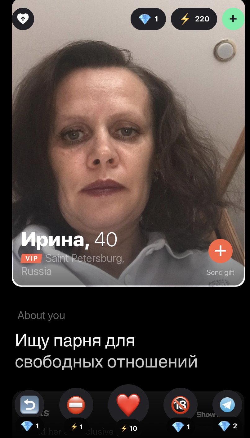 В твинби завезли обычных ботов. 3 фото на которых отлично видно лицо и общее положение но не одной детали где это фото сделано не видно, тупое описание из одного двух предложений типа пообщаемся, люблю пить и дышать И если ботов ради тг рекламы ещё можно понять, шлюхи тг рекламируют, то смысл от таких ботов я хз. Ради массовки наверное