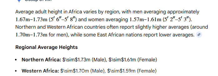 >>10534136 >вы просто коупите средой обитания потому что у вас родители карлики У меня оба деда 180+ см, отец 177 с чем то. Почему я не дорос до отца? Где твои гены м? >я знал кучу высоких африканцев которые помои жрали у себя на родине и выросли под два метра Чо ещё расскажешь? Они очевидно не помои жрали раз под 2м.