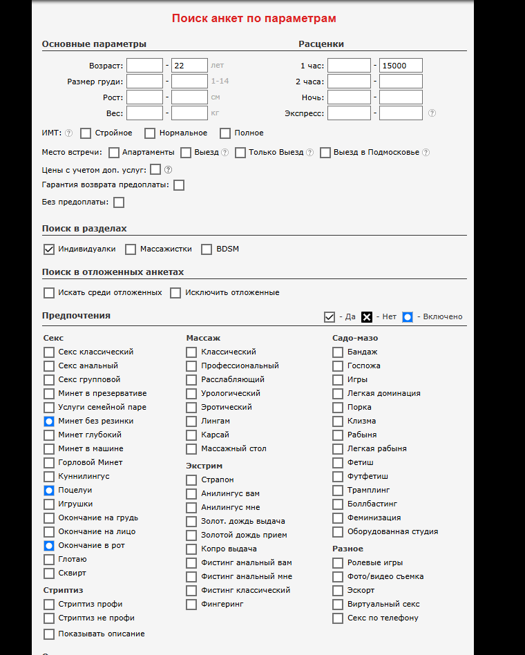 По старому номеру был у 30 фей где-то. Все анкеты что ли скинуть тебе? Или тебе нужно тех кто может принять без пробивки с чистым номером? https://b.intimcity.bike/indi/anketa698307.htm Первый раз у неё был, без пробивок и походов приняла. Щас она 20к, была намного дешевле, с такой ценой клиентов точно меньше и попасть шансы ещё выше.
