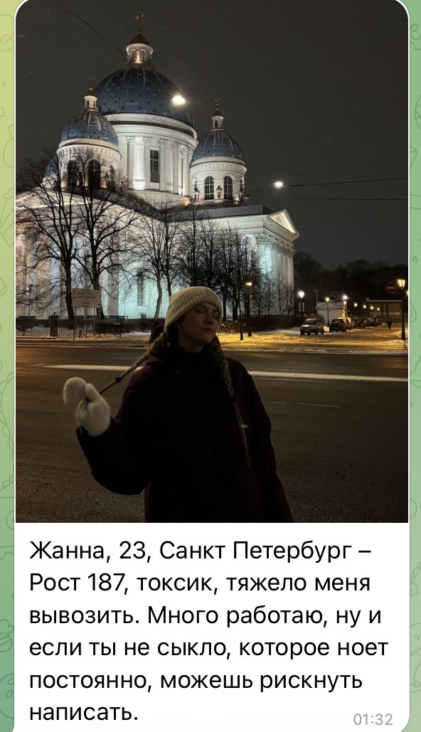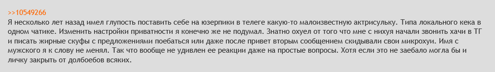 Создал анкету в закрепе знакомств на этой доске, написало 8 человек, 4 из них запруфанные тянки с голосовухами, 3 скинули фотки, которые не гуглятся. Но… Им всем очень мало лет, разговаривают будто под кайфом, солевые давалки, мне стало мерзко и я всех забанил.