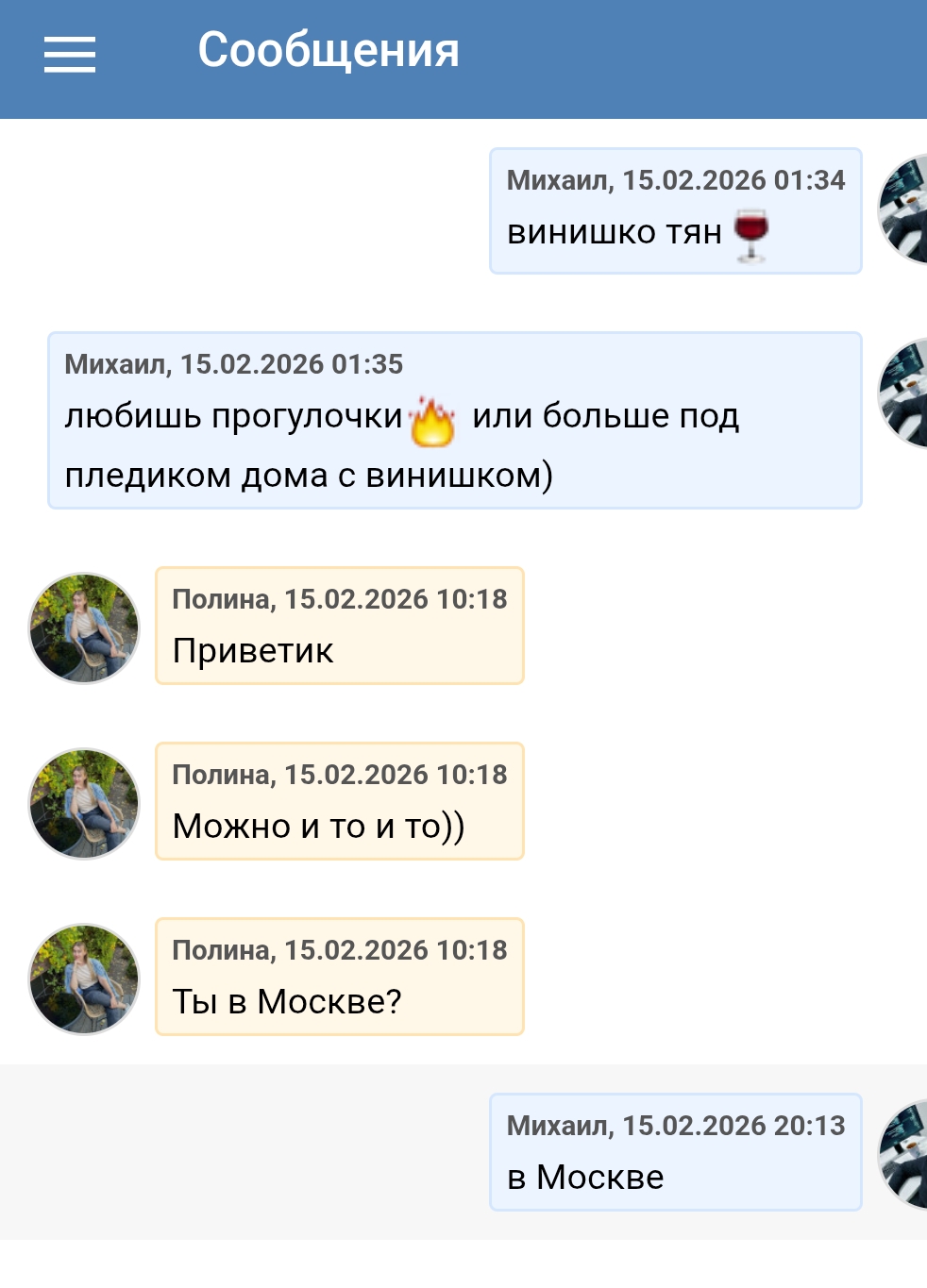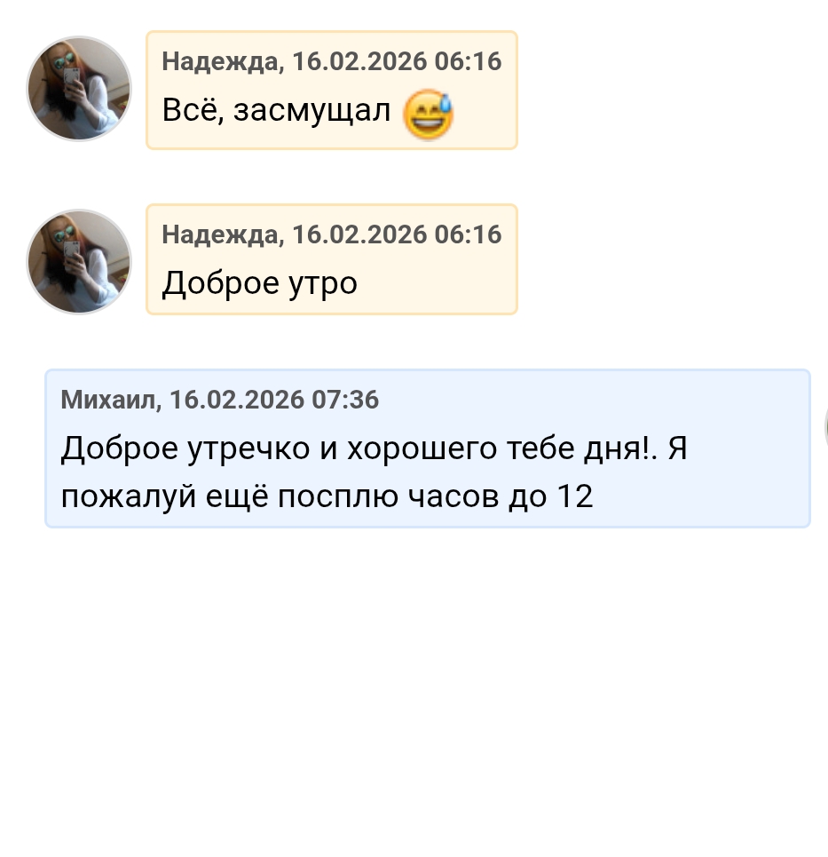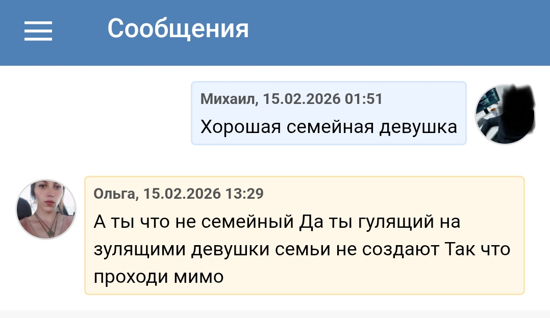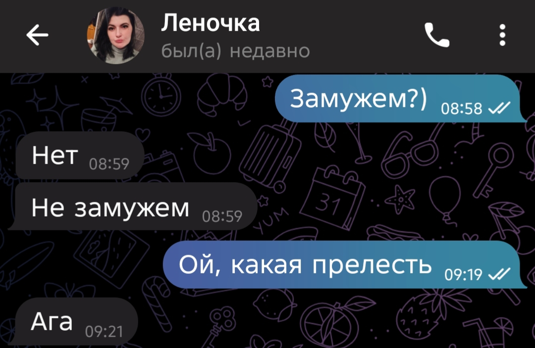 2 дня общался с тянкой. Кстати прям норм такая девка мне подстать общаться легко . Вчера пожелали друг другу спокойной ночи. С утра пишет мне доброе утро, ну я ответил и лег ещё поспать. Потом проснулся пишу, а всё, уже уже в блоке. Получается принцесса хотела общения в 6 утра, не развлек, либо нашла другого. Кстати не первый раз такая ситуация на пустом месте после приятного разговора, обычно после ночного сна, че то у них там переклинивает похоже. Ну и в целом непонятно зачем блокировать, я и так после того как пишу вопрос и не отвечают больше не тревожу.