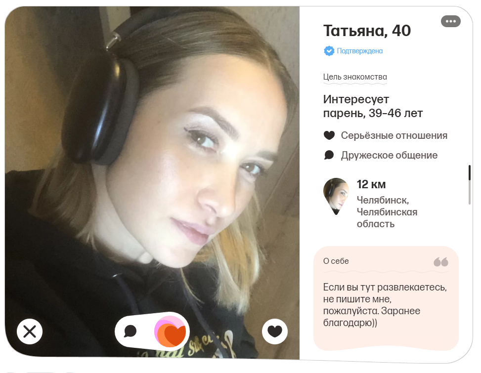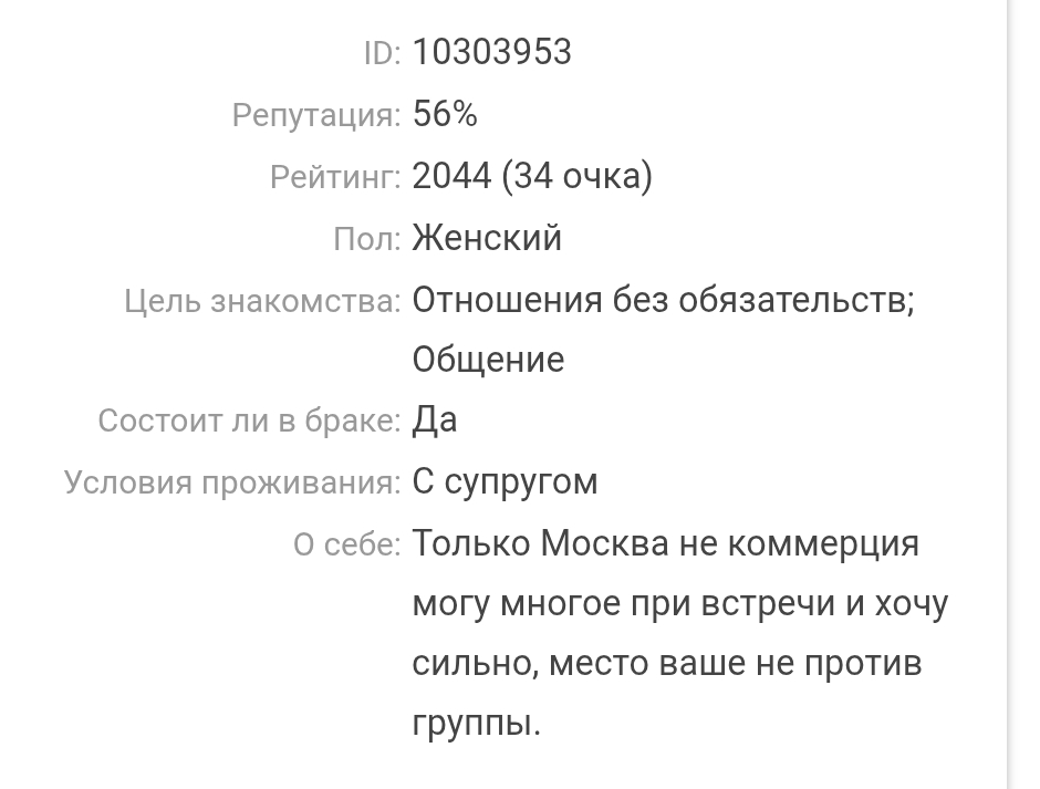 и со спокойной душой иди лайкать старых жирух, там тебе твоя ущербность не будет давить и ты легко заигноришь всё, что написано в анкете