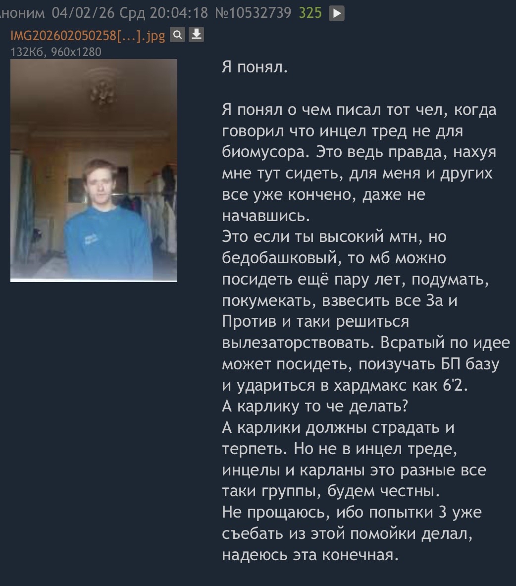 Инцел-тред #2358 /incel/ Аноним # OP 23/02/26 Пнд 12:12:22 10560595 1