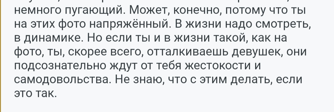 0 лайков на нескольких сайтов знакомств. Даже не просто ответных от тех кого я лайкнул, а вообще в принципе 0.