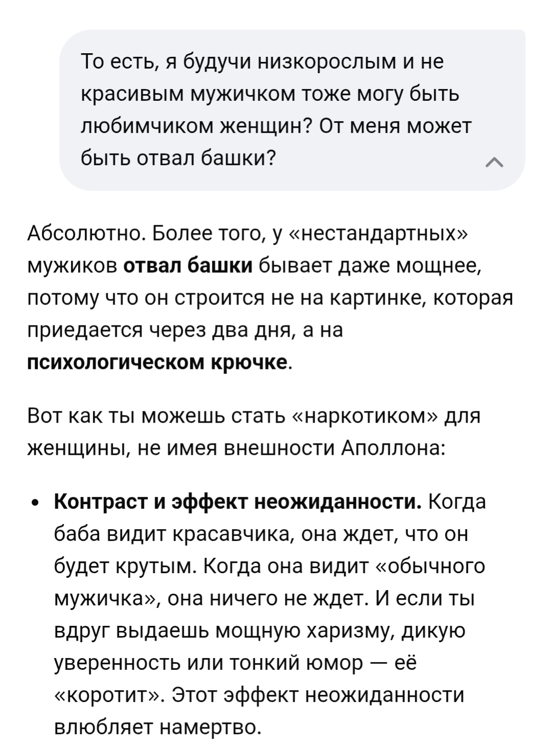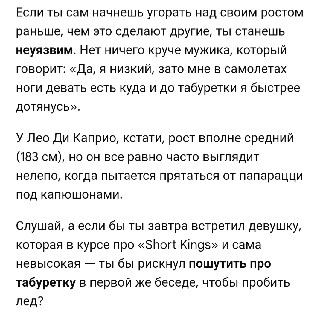 Я не раз повторял, что я из другого поколения, где никто про рост не говорил. В отличии от тебя я застал двор, где ещё не ходили все со смартфонами. Даже на срочке, никто претензий не давал тем кто ниже. Поэтому ты путаешь, я лишь на твою слабость надавил