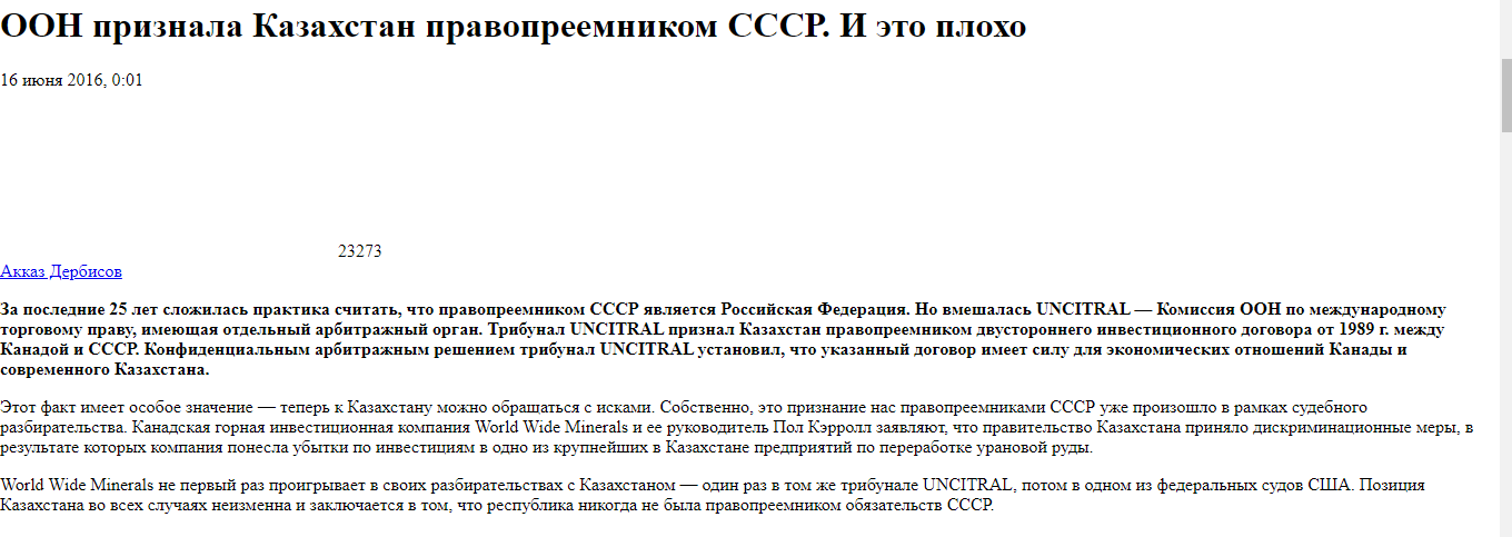 >>213526 >Еще вопросы? Да, тебя в детстве зачем по голове били? Говно с которым ты тут носишься касается непосредственных активов, а не правопреемственности в юридическом смысле. Или ты себя умнее международной комиссии ООН считаешь? Есть международный документ и решение по нему, никого не ебет кто там что у себя в падике порешал, статус страны формируется относительно мнения окружающих стран об этой стране, маня.