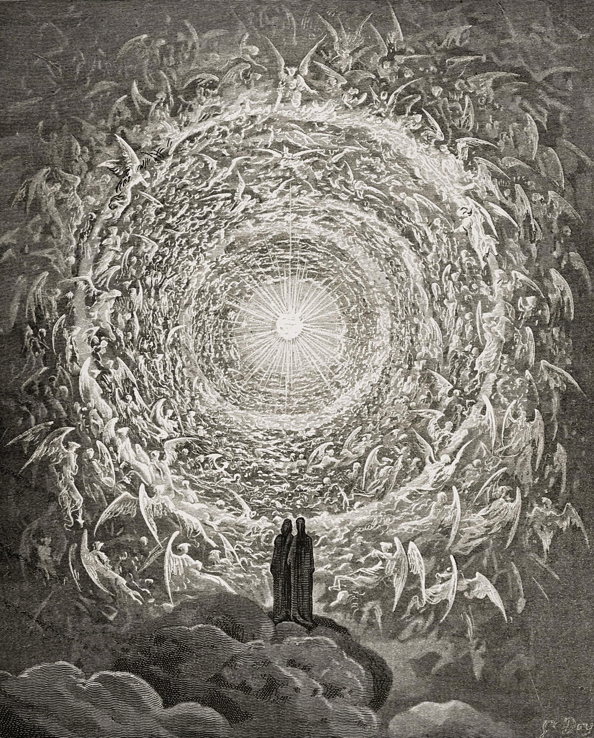 Вергилий не может сопровождать Дантуса на Небо, т.к. язычник. Поэтому все чудеса горнего мира ему покажет Беатриче, ведь она в своей святости достигла высшего дана и ей уготовили место прям в самом элитном небесном пентхаусе. Они проходят сферу огня, окружающего Землю и затем посещают все планеты (в т.ч. Луну и Солнце). Тут начинается наконец космическая опера. По Данте планеты - это сгущения эфира, внутри которых обитают души праведников, причем они приписаны к определенным планетам согласно симпатической связи планетарной аллегории и заслуг души. Т.е. праведные воины помещены на Марс, влюбленные на Венеру и т.д. За сферой Сатурна, последней из планет, они проходят сферу неподвижных маленьких звезд, затем хрустальная сфера, потом аристотелевский Перводвигатель, где сидят души пап римских и видимо вращают Мироздание, а уж за ним находится Эмпирей - самый райский рай, Пламенеющая Роза, представляющая собой снова ступенчатую воронку, амфитеатр, где сидят души ветхозаветных пророков, новозаветных апостолов и самых святейших святых, в т.ч. Беатриче и император Генрих IV, лол. И там они всю вечность созерцают источник Божественного Света, а в нём сокрыта тайна божественной Троицы, из-за проблемы которой христиане тысячу лет спорили и резали друг другу глотки. И правда, как можно это осмыслить - бог один, но при этом расщеплен на три сущности, и при этом все равно един? Хочешь для себя раскрыть эту тайну, анончик? Тогда прочитай Божественную Комедию, сука!