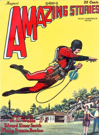 С измальства маленький Гуго телебонькал на всякую электронику, которая тогда находилась зачаточном состоянии, и даже сам что-то изобретал и нажил на этом какие то небольшие деньги. В 1904г, в год когда родился Гамильтон, 20-летний Гуго приезжает в Америку с мечтой наделить каждого жителя этой большой и богатой страны личным радиоприемником. Именно его компания стала продавать первые в мире радиоприёмопередатчики, таже он добился выделения для радиолюбителей своего диапазона частот, т.е. фактически он стоит у истоков радиолюбительской связи. Для популяризации своих идей Хьюго пытался создавать просветительские общественные организации, а также начал издавать специализированные журналы про радио, электронику, самолеты, а также секс, лол. В одном из которых (Modern Electrics) он еще в лохматом 1911 году начал печатать свой роман "Ralph 124С 41+", созданный в лучших традициях викторианской фантастики, однако считавшийся жуткой твердотой по тем временем. Идея печатать в журналах развлекательный материал привлекала больше хомячков, и в журнале фантастики становилось все больше и больше, пока в 1923 один номер вышел целиком наполненный НФ. Ситуация конечно была блядская, и тогда Хью решает выпускать для подписчиков бесплатное литературное приложение. Так в марте на свет появился Amazing Stories, первый в мире журнал, посвященный исключительно научной фантастике,в отличии от других палп-магазинов, где была мешанина жанров. Журнал имел взрывную популярность, однако маститые авторы сперва сторонились его. Однако Гернсбек не брезговал брать в план произведения нонеймов. Так он вывел на свет "поколение Герсбека" - когорту молодых-шутливых авторов, писавших не столько концептуальную НФ, а скорее фантастические боевики, такие имена как Док Смит, Джек Уильямсон, Френсис Флегг, Филип Ноулан и др. Также через этот журнал вошли в мир литературы Кэмпбелл, Азимов, ле Гуин, Желязны и многие другие. А еще Хью ввел в своем журнале традицию дискуссий авторов и читателей на тему того, что есть научная фантастика, каково её будущее и место в мире. Это способствовало тому, что вокруг журнала начла образовываться ламповая тусовочка, ставшая прообразом первого Фэндома.