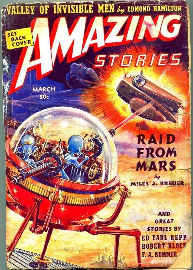 А вообще дела у нашего мальчика шли не очень. Он довольно быстро потерял Amazing Stories, пытался издавать другие НФ-журналы, в частности он породил другой винрарный палп Wonder Stories, но потерял и его. Хью не стал изобретателем, перевернувшим мир, не сколотил состояния, правда за заслуги перед человечеством на родине его посвятили в Офицеры дубового венца. Однако несмотря на все неудачи, он никогда не отчаивался и продолжал самоотверженно прививать миру любовь к Науке и Научной Фантастике. И фэны по достоинству оценили его подвижнический труд.