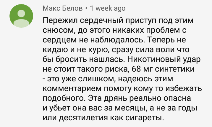 Решил вкатиться в снюс ради интереса, до этого парил и параллельно продолжаю 3мг. Сначала купил Oden's, который, похоже, оказался палью, ибо не торкает совсем. То же с FRST, но он и не палёный говно, судя по отзывам. Blax с малиной дал самый приятный жмых, приятно расслабив, но потом начала болеть голова, ибо передержал. Alfa с яблоком совсем пиздецовая, меня сразу рвать начало. До хрена аромок, сразу слюна пошла, которую непроизвольно начал глотать с Blax тоже глотал, но тошнить не начинало. Что ещё можно с такими данными попробовать?