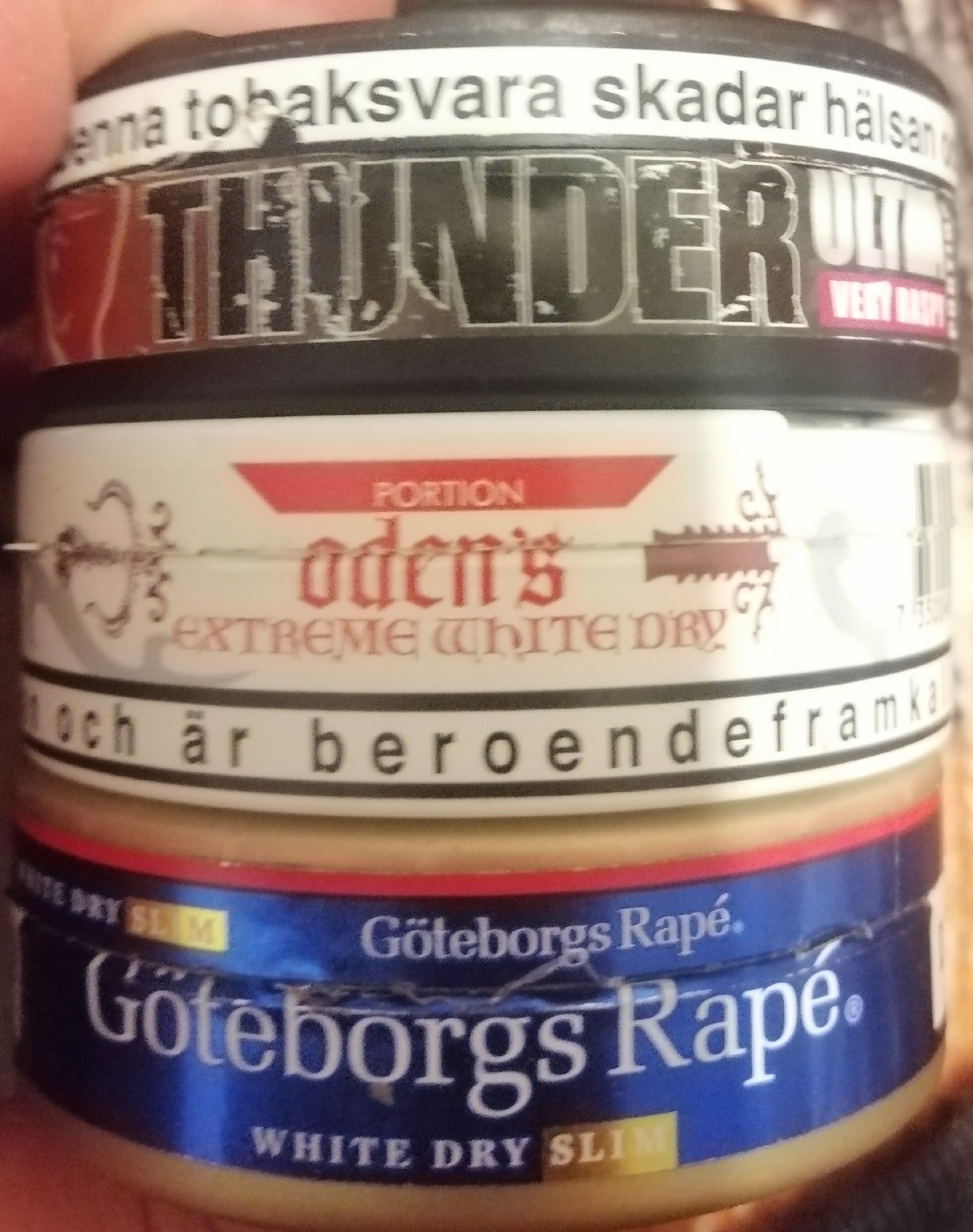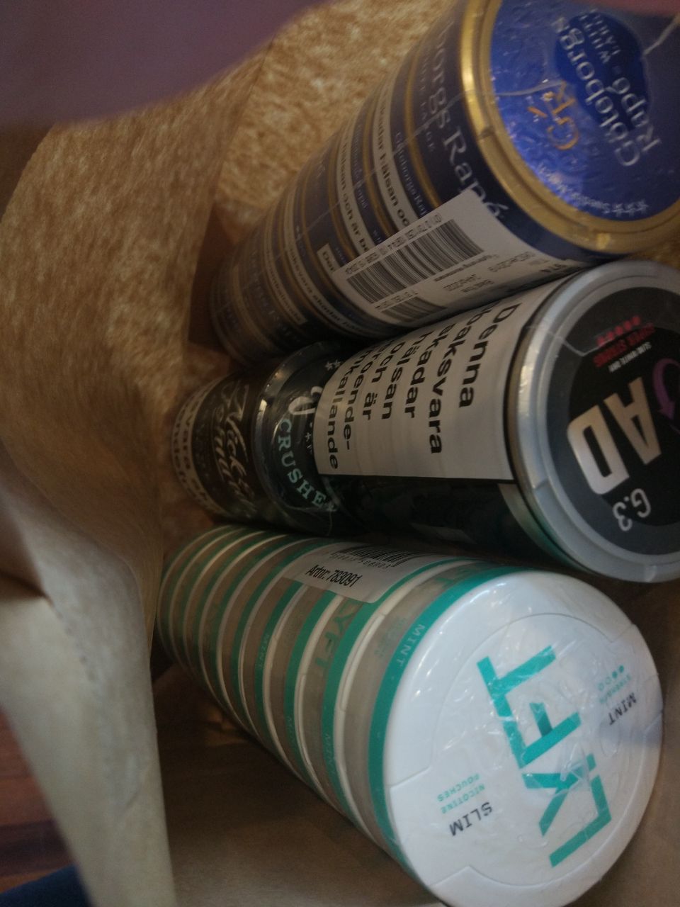 Боже, храни Швецию! Тян привезла из дьютика в Стокгольме мой любимый Гётеборг (на постоянке его кидаю, не очень крепкий, выраженный приятный вкус табака), G3 load (крепкий, очень солёный, жмыхает на отлично, под бухлишко его кидаю) и Nick & Johnny (не пробовал его еще). Ну а Lyft в подарок, сам не кидаю эту срань.