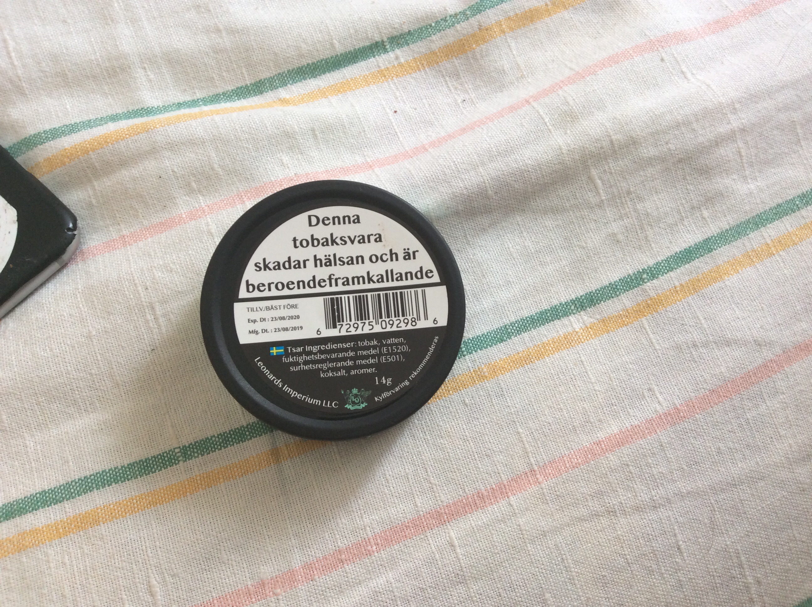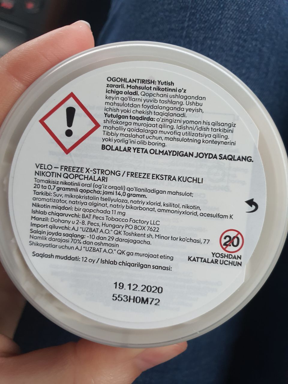 >>21159 Да, так как пол банки заклеено надписью об опасности табака, главная суть - тип снюса - потерялся. Поэтому здесь не указанные в телеге 20 мг/г, а всего 8-10.