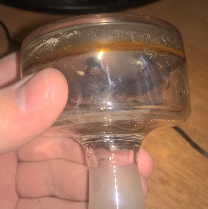 >>6584 1) Пробовал курить на другой чашке? Может, стекло виновато. 2) Кинь в раствор лимонной кислоты на ночь. 10 грамм на литр, можешь даже чуть больше чем 10. И все уйдет.