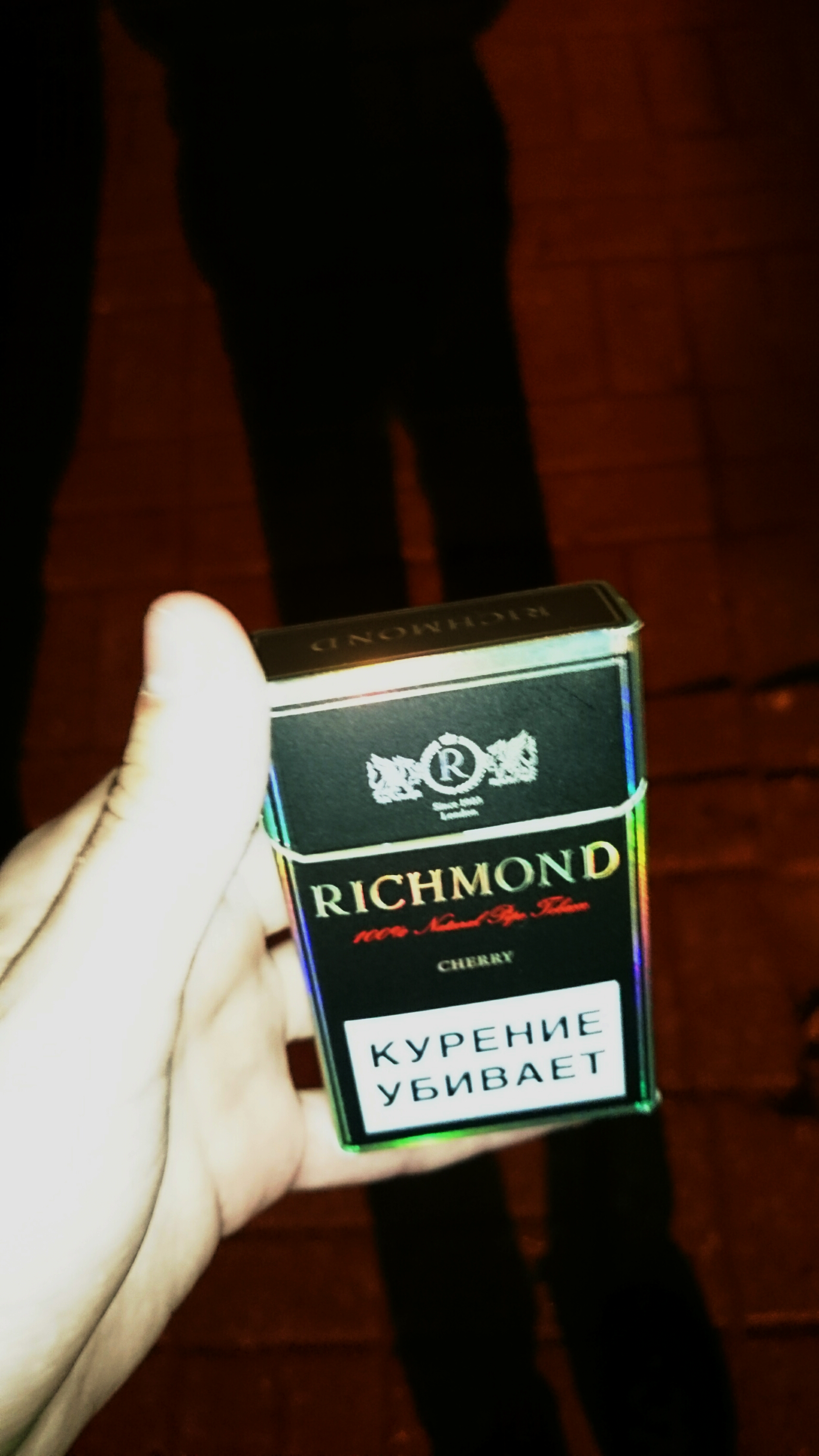 Долгое время курил Winston XSyle, пробовал много всего из сегмента в районе до 100 рублей - LM, LD, Яву, Kent (в т.ч. ментоловый), kiss, lucky strike. Сегодня купил Richmond Cherry в чёрной пачке. За свою цену (135) очень порадовал, напомнило немного электронку, в тоже время приятный вкус табака и небольшой вкус вишни, при выдыхании через нос вообще кайфово. Ну и понты, конечно же, куда же без них. Пачка выглядит солидно, сами сигареты коричневые со светло-бежевым фильтром. Из минусов - достаточно быстро курятся.